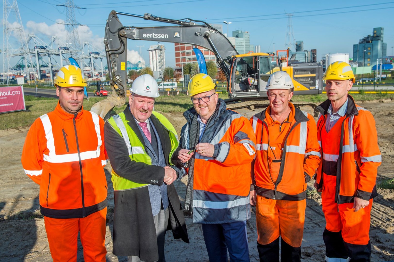 Terminal operator DP World Antwerp is building a brand new operational building at its container terminal on the Deurganck dock (quay 1700). It offers better facilities to the more than 500 dockers and becomes the operational hub of the terminal. The old building makes way for extra containers. The start of the works is attended by the mayor of Beveren, Marc Van de Vijver.